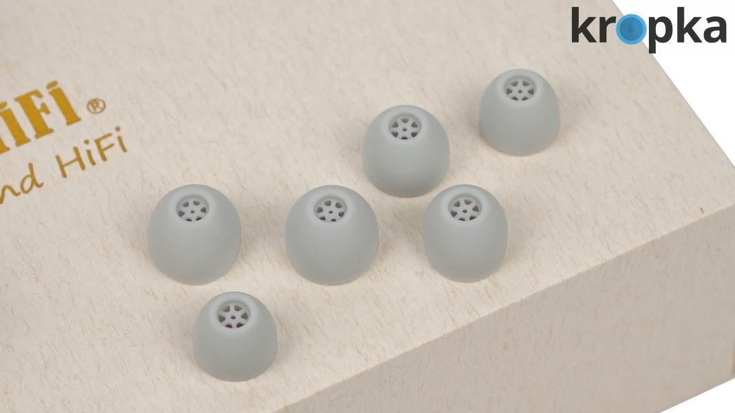 耳塞套是由KIWIEARS提供的代号为KIWIFLEX的硅胶套,有滤网设计,通体非常非常柔软、而且与耳道的贴合度非常完美,是那种极致亲肤化的感受,比dd自家的ST35还要软一些。相比较于也许声学性能更好的各种金属导管+高摩擦力的液态硅胶套,我更倾向于把佩戴舒适度放第一位,不喜欢耳道被黏住的感觉。